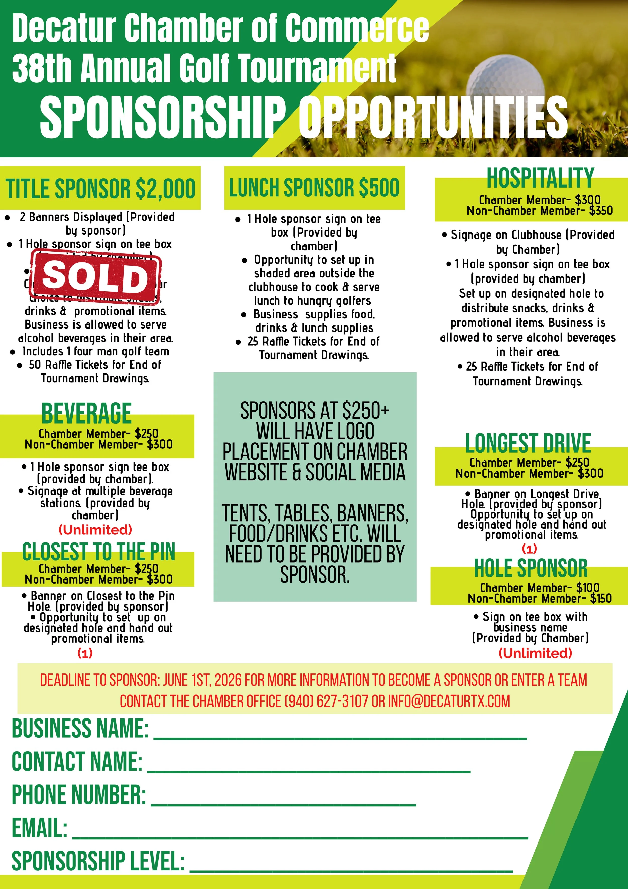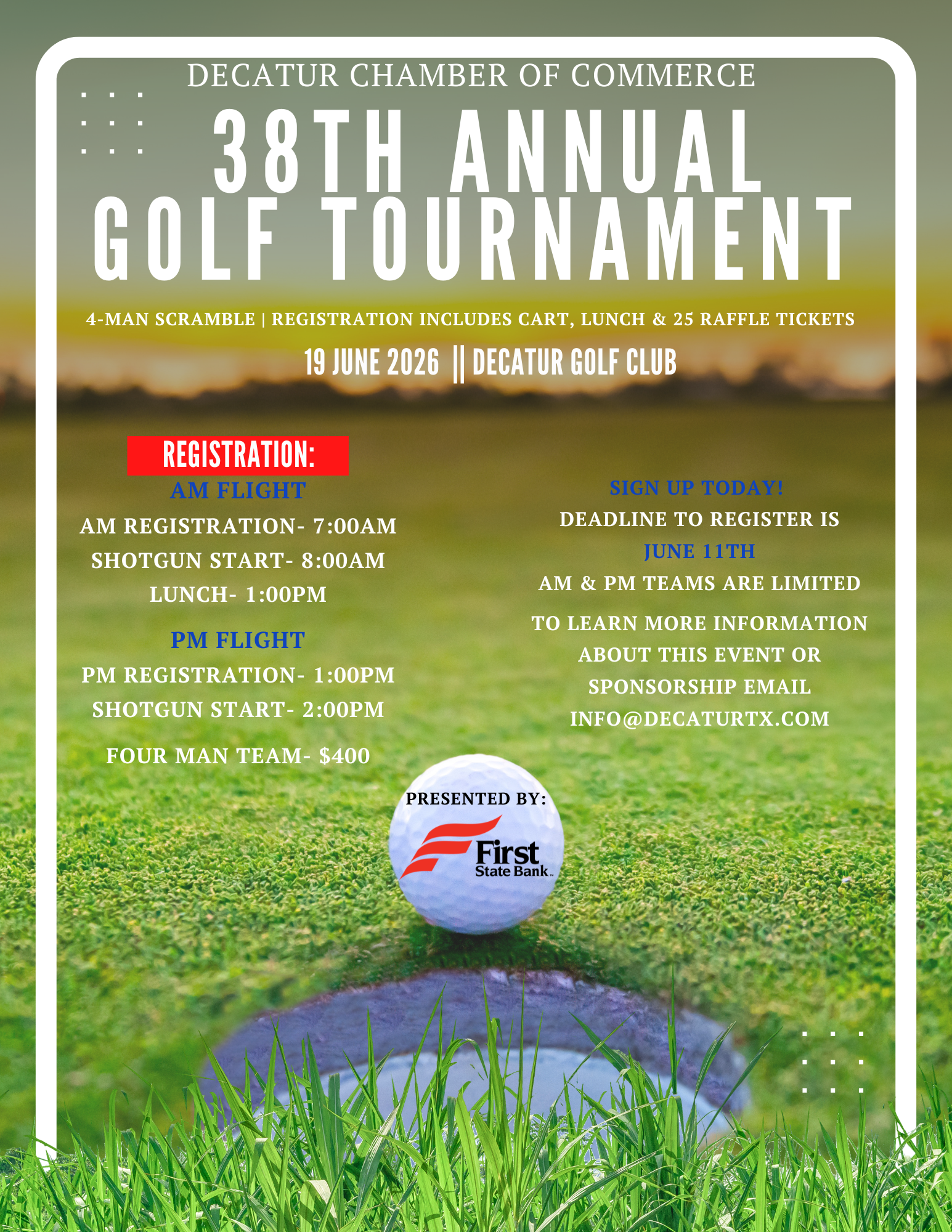 The Decatur Chamber of Commerce Golf Tournament provides members with an opportunity to network with fellow members and their current or potential clients in a fun atmosphere. Come out to the Decatur Golf Club for a great day golfing, fun, and maybe some prize money too!